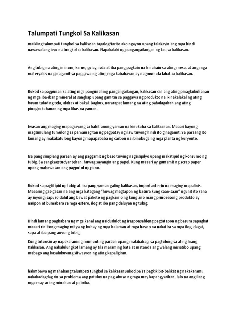 Talumpati Tungkol Sa Kalikasan Pdf