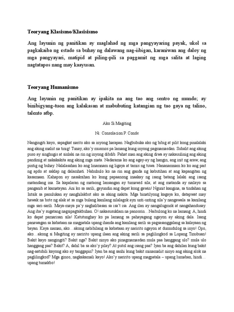 Ako si Magiting -ni Consolacion P. Nagmula sa pormal na sanaysay ang talumpati. Tunay akoy musmos pa lamang kung inyong pagmamasdan.