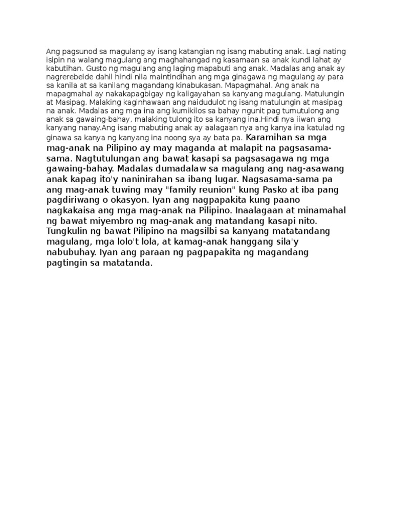 Ang Pagsunod Sa Magulang Ay Isang Katangian Ng Isang Mabuting Anak Pdf