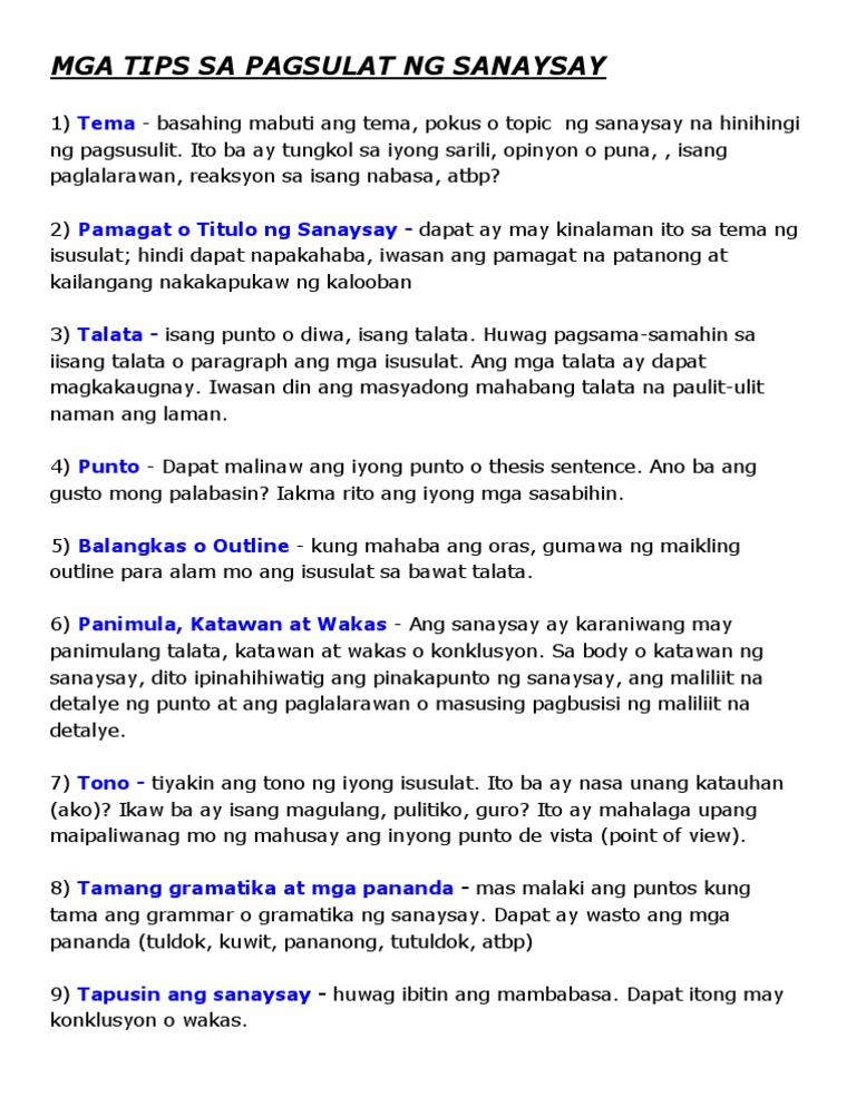 Ano Ang Dapat Iwasan Sa Pagsulat Ng Sanaysay