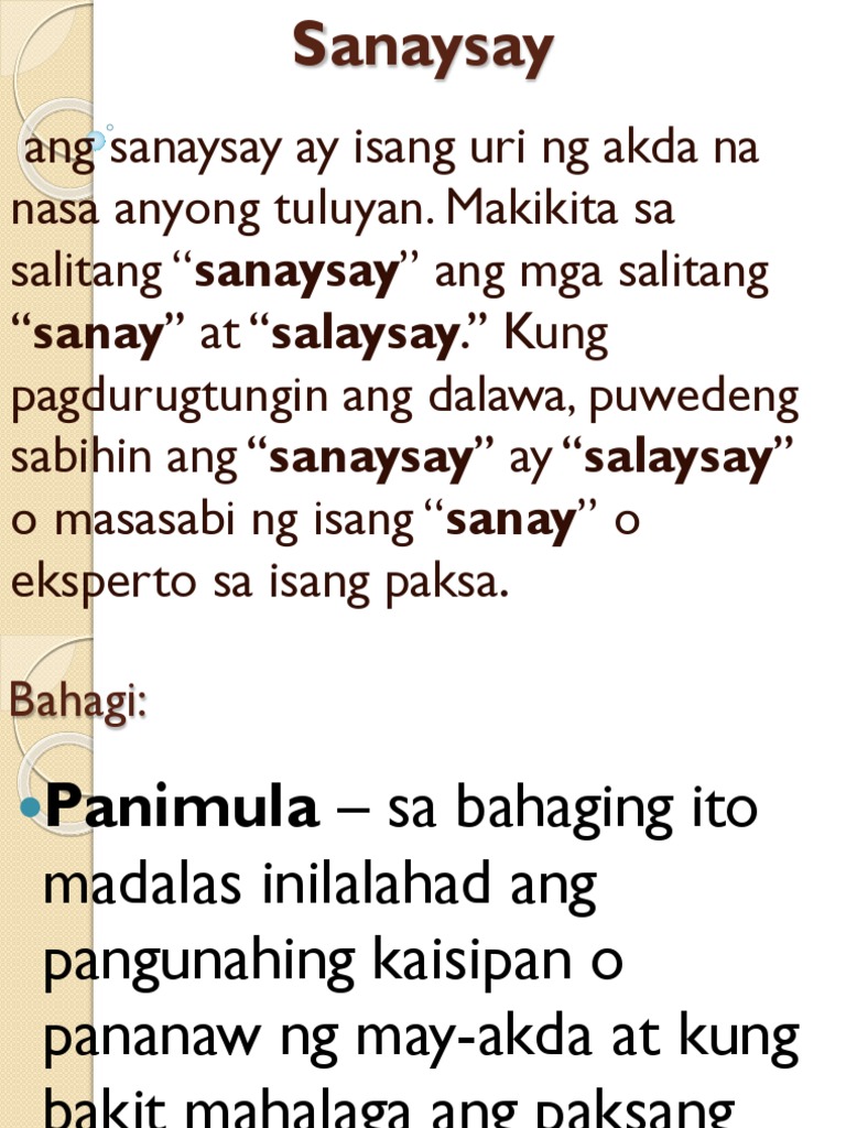 Uri Ng Sanaysay Kahulugan At Mga Bahagi Nito Filipino