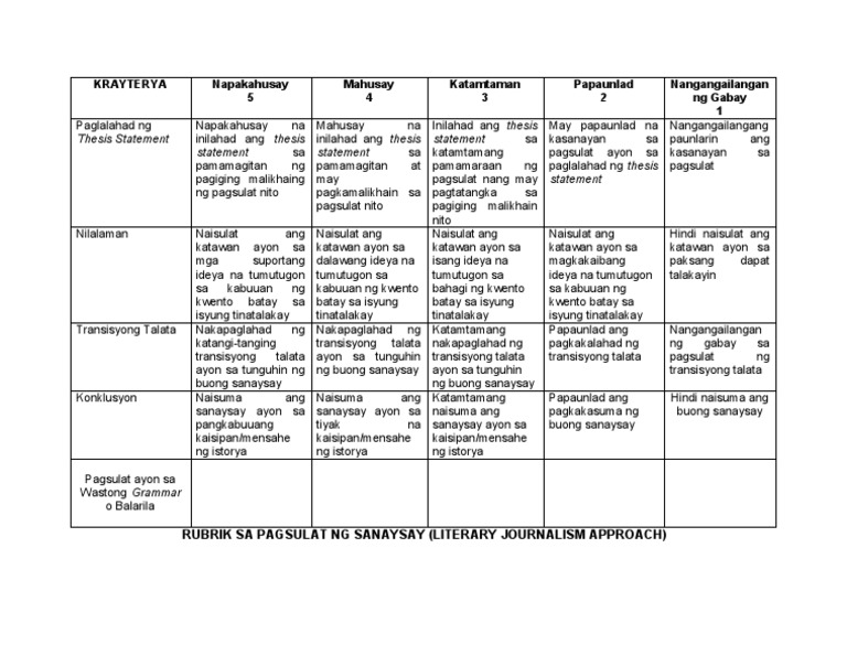 Rubrik Sa Pagsulat Ng Sanaysay Pdf