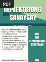 Ang Replektibong Sanaysay ay isang uri ng sulating pampanitikan na isang uri tuluyan o prosa. Makakatulong ito sa kritikal na pagsusuri. Ang Replektibong Sanaysay ay isang uri ng sulating pampanitikan na isang uri tuluyan o prosa.