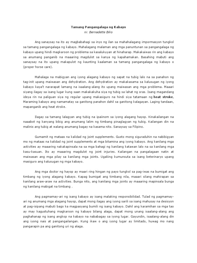 Ano ang sanaysay at magbigay ng halimbawa at mga uri nito. Ano ang salitang impormal. Mahalagang malaman ang mga panuntunan sa pangangalaga ng kabayo upang hindi magkaroon ng problema sa kasalukuyan.